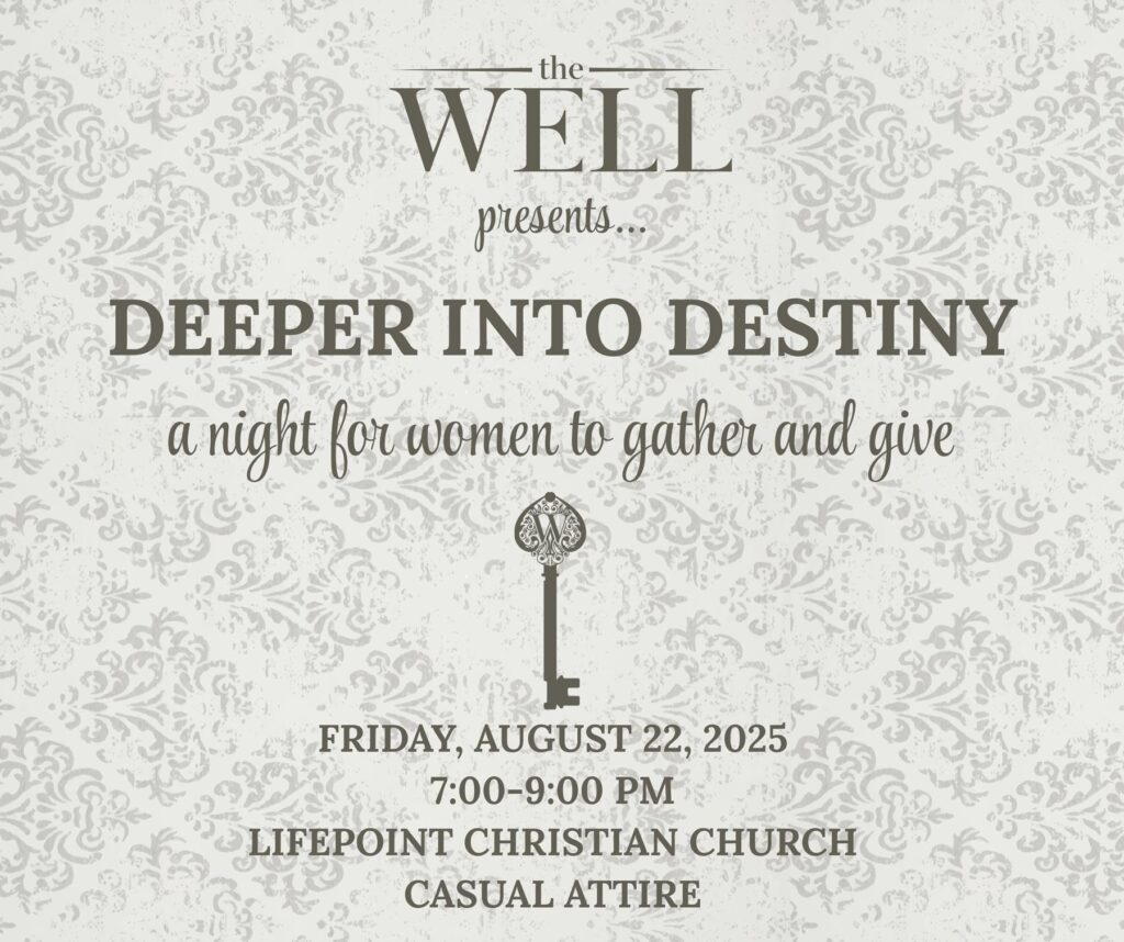DEEPER is a monthly women’s gathering that is sponsored by The Well and hosted by Lifepoint Christian Church. Every fourth Friday of the month, women come together for the unified purpose of experiencing deeper encounters with God.